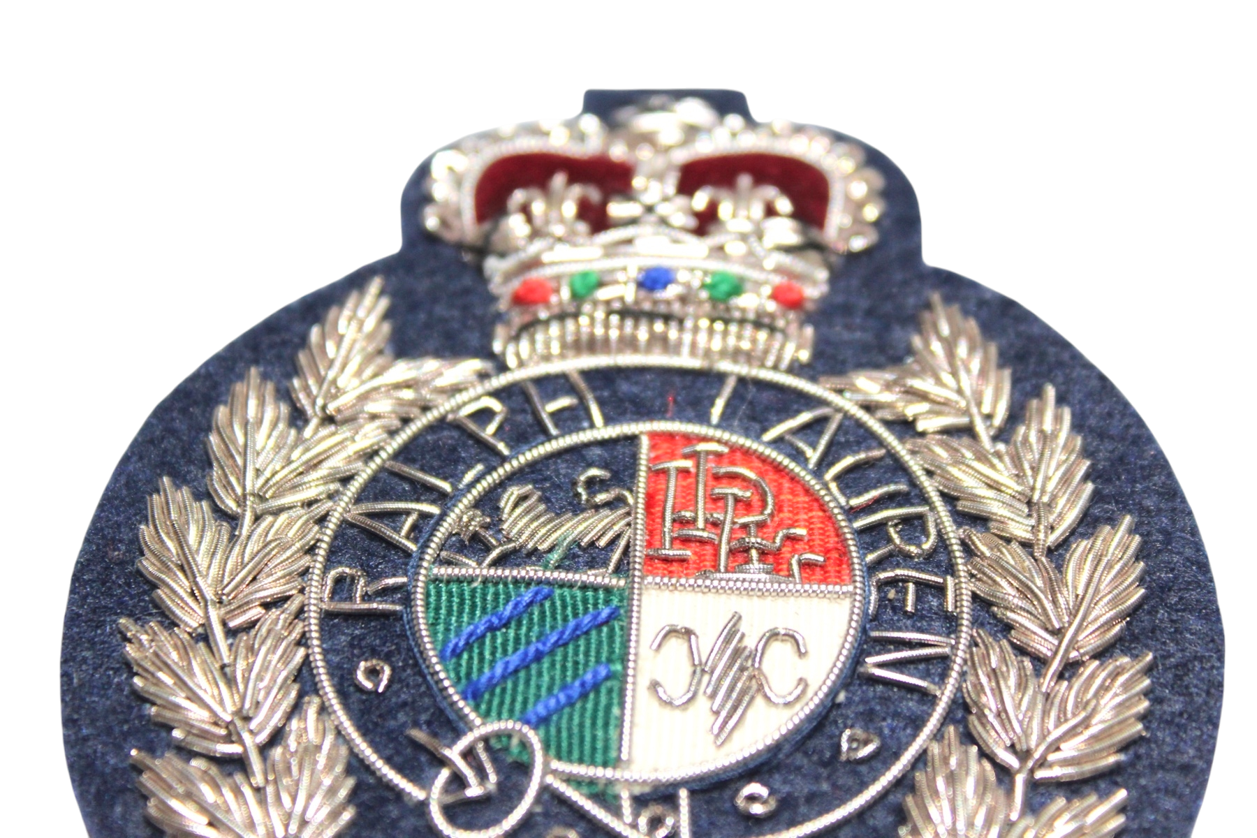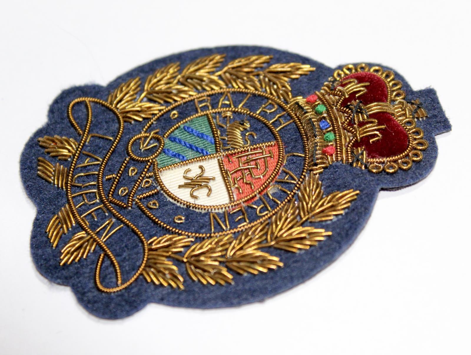 Lauren Hand-Embroidered Crest Patch on Navy Blue Felt – Perfect for Blazers, Jackets, and T-Shirts