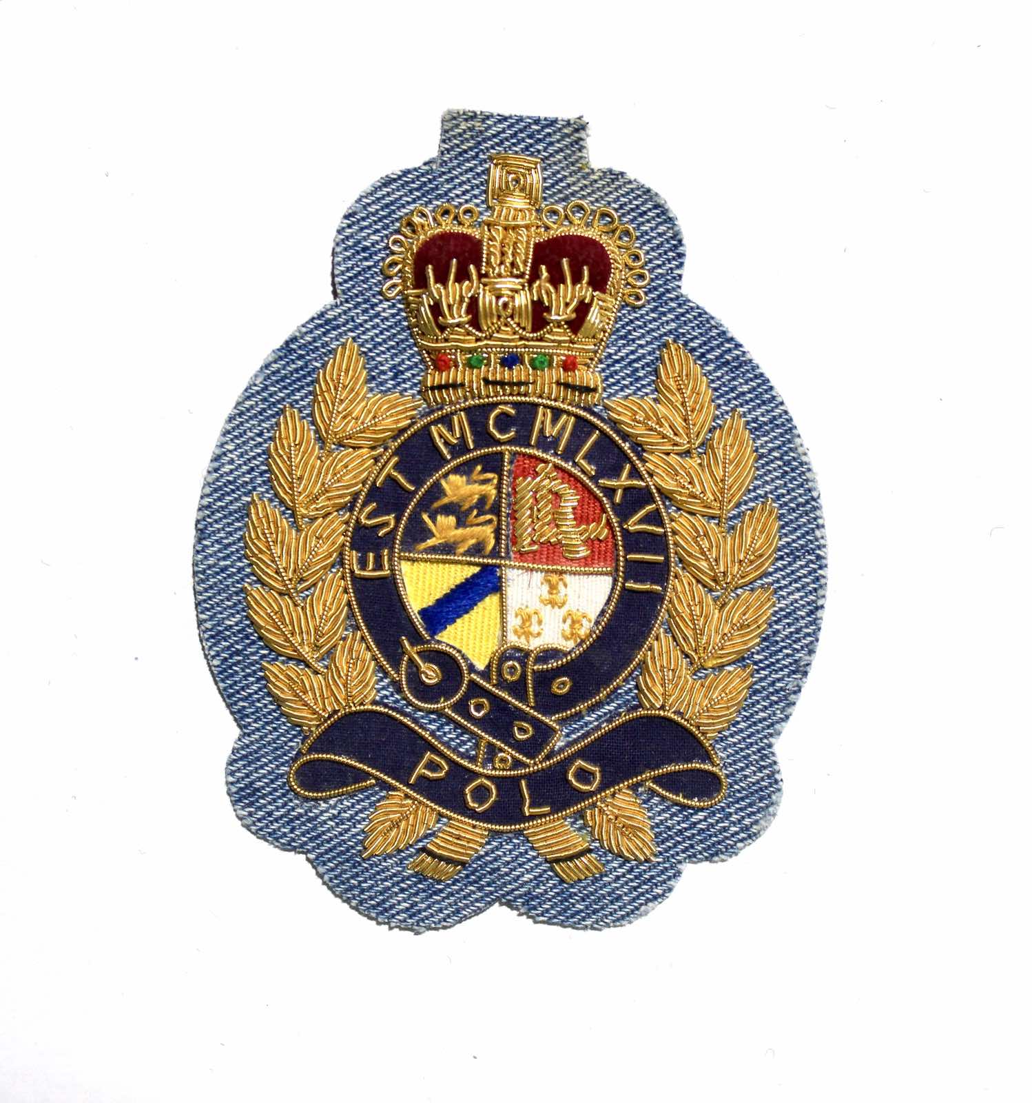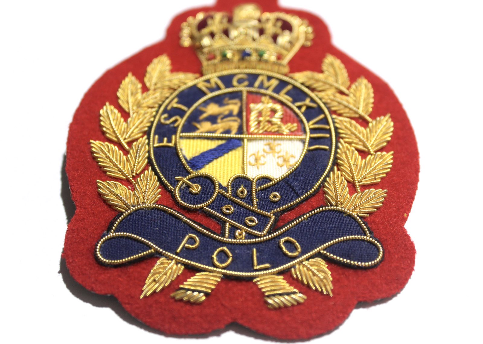 Hand-Embroidered Polo Crest Patch – Gold Bullion Wire Badge