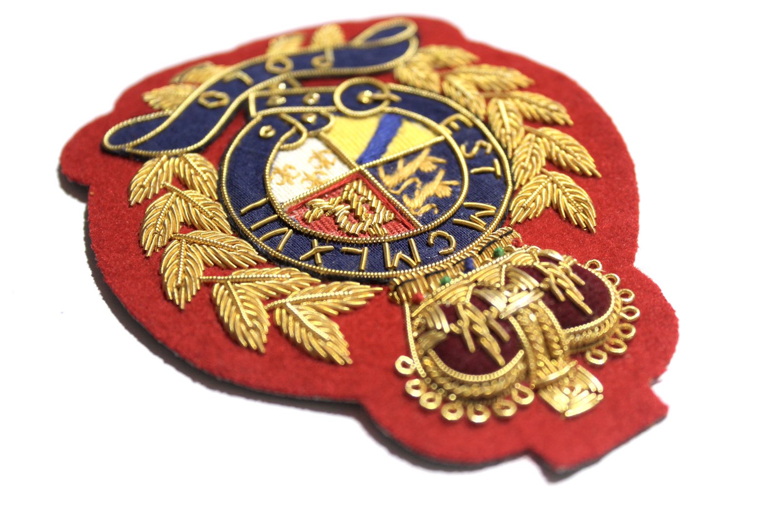 Hand-Embroidered Crest Patch – Gold Bullion Wire Badge