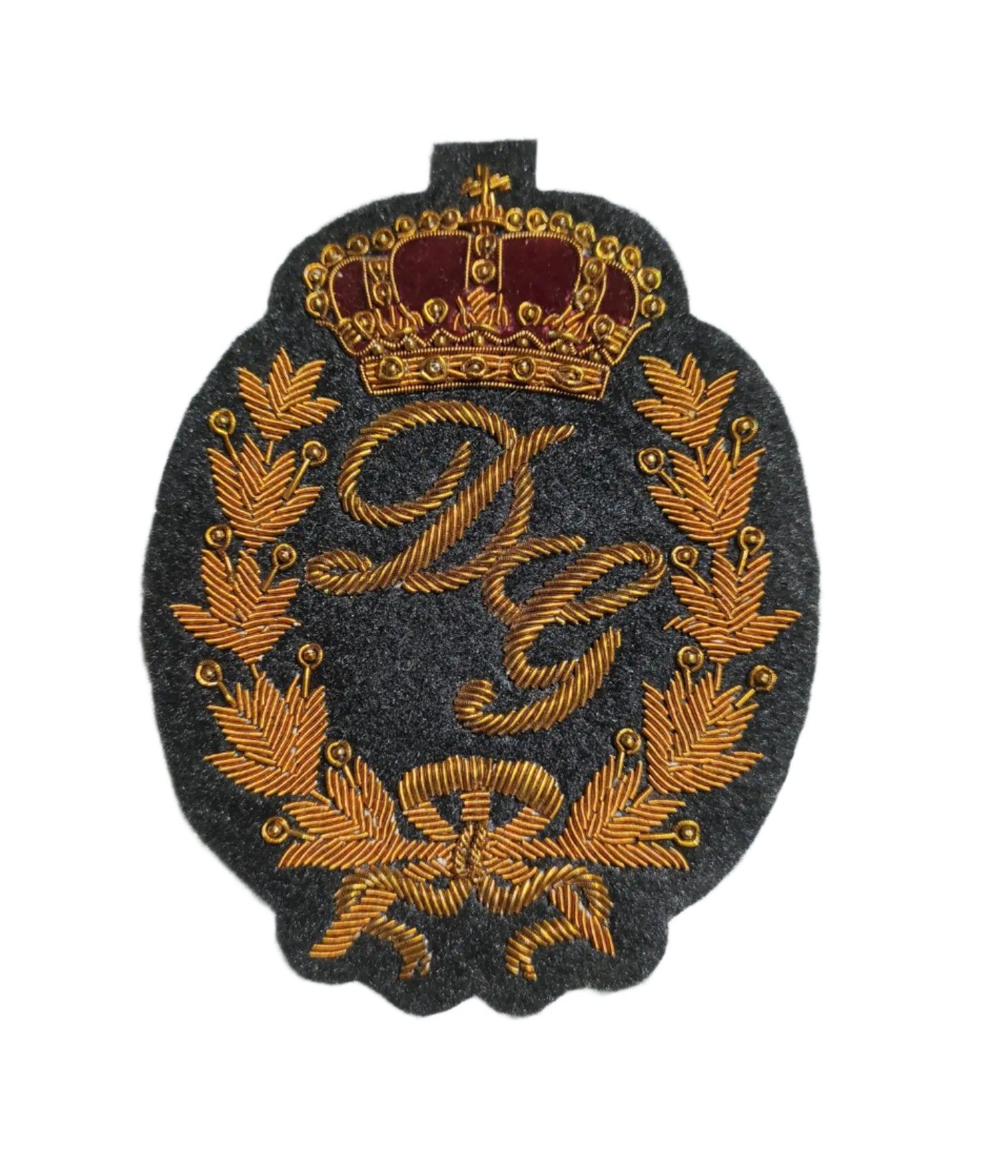 This luxurious hand-embroidered crest patch is crafted with antique gold bullion wire, adding a regal touch to blazers, jackets, coats, and designer accessories. Available in two stunning variations: