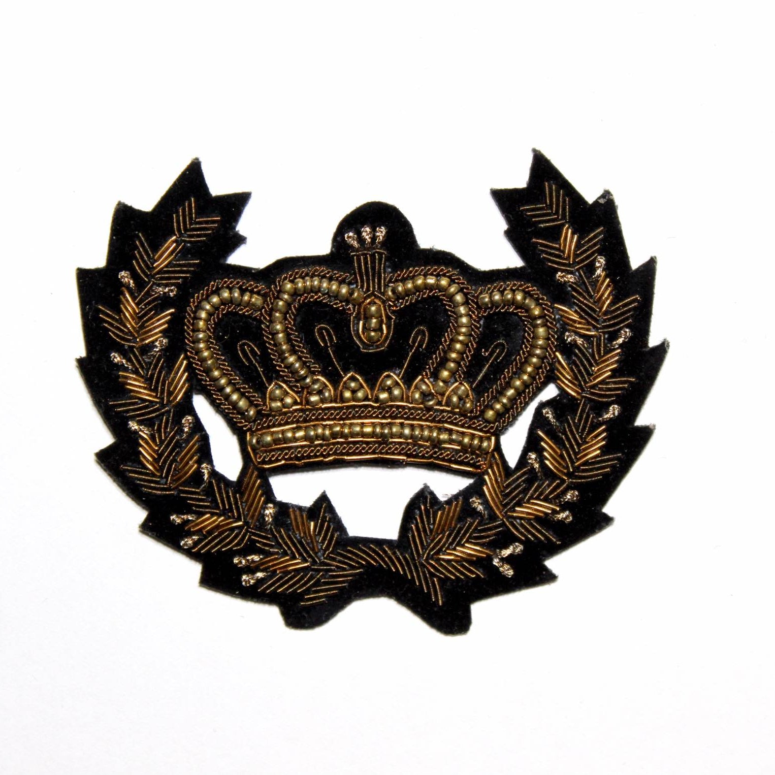 Hand-Embroidered Royal Crown Patch – Antique Gold Bullion Wire Badge
