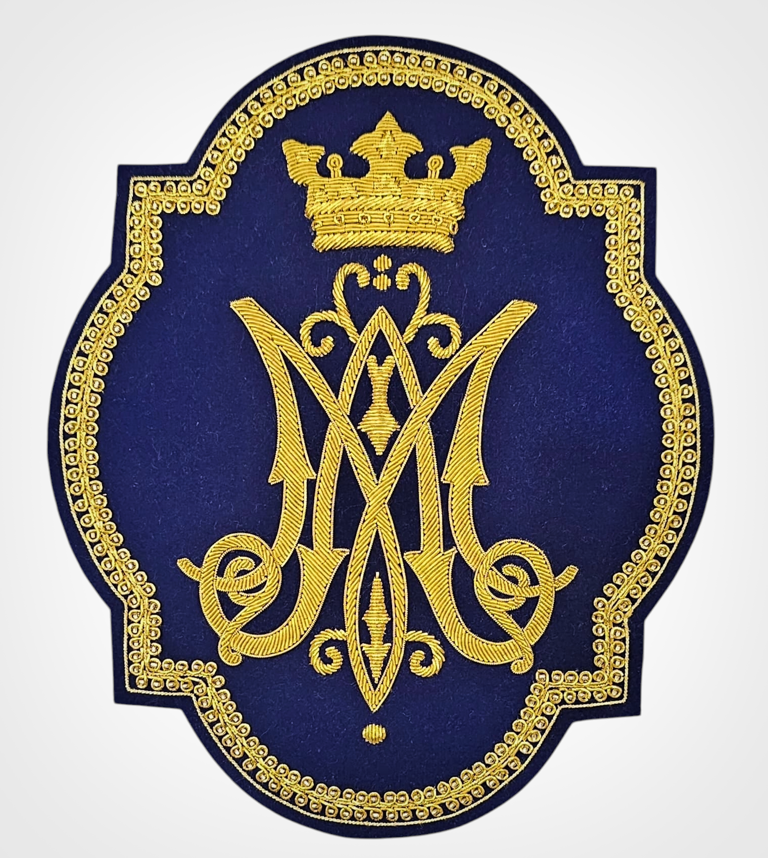 Hand-Embroidered MA Marian Appliqué – Gold Bullion Wire for Catholic Vestments