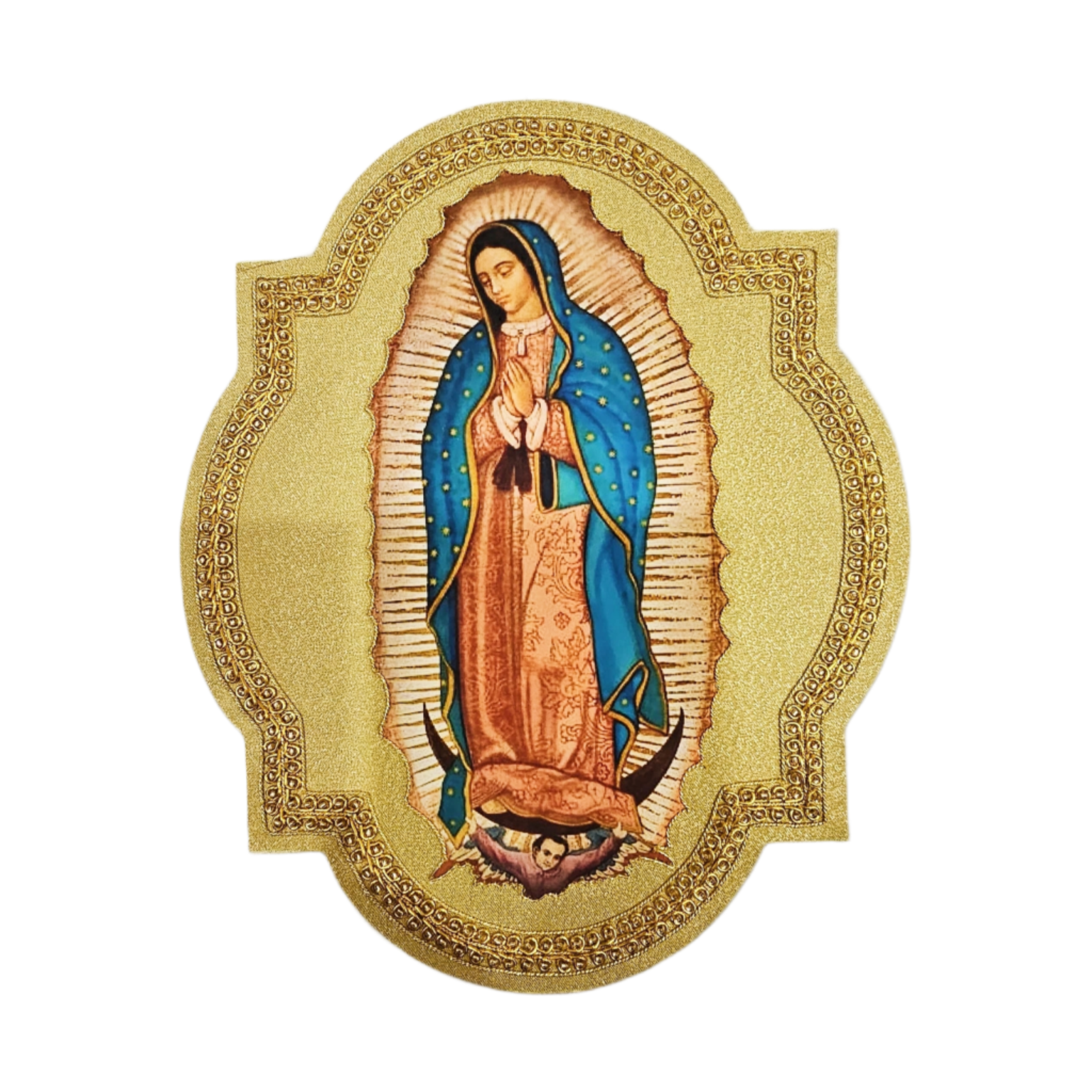 - Hand-printed image of Our Lady of Guadalupe, capturing sacred details with precision.
