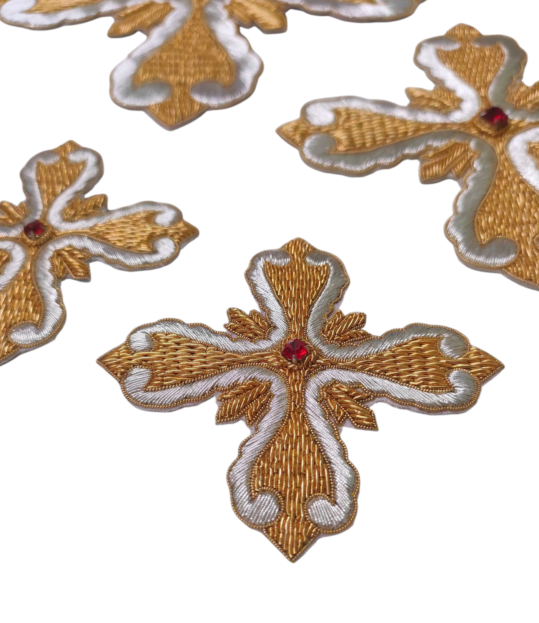 Adorn your sacred vestments with this luminous cross set — where devotion meets exquisite hand embroidery in every stitch.