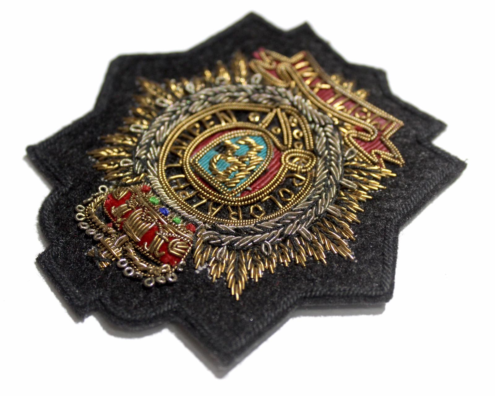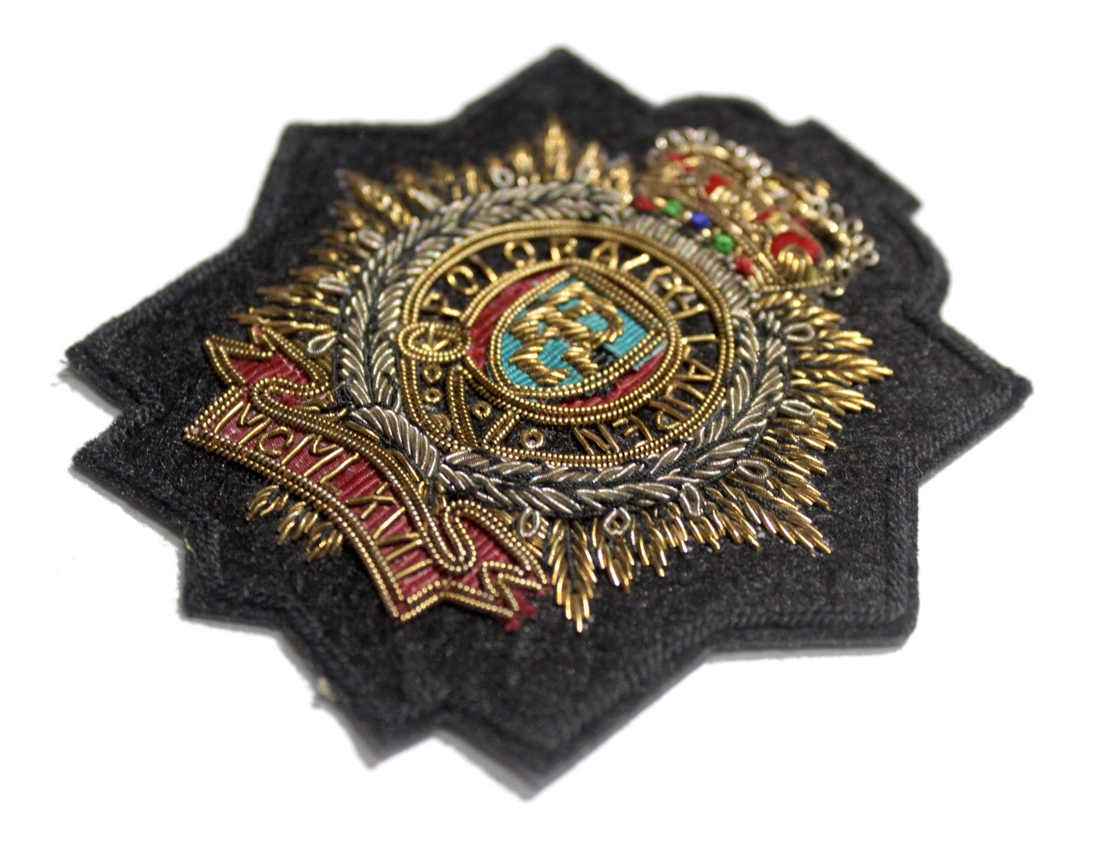 Hand-Embroidered Fashion Crest Patch – Antique Gold Bullion Wire Badge