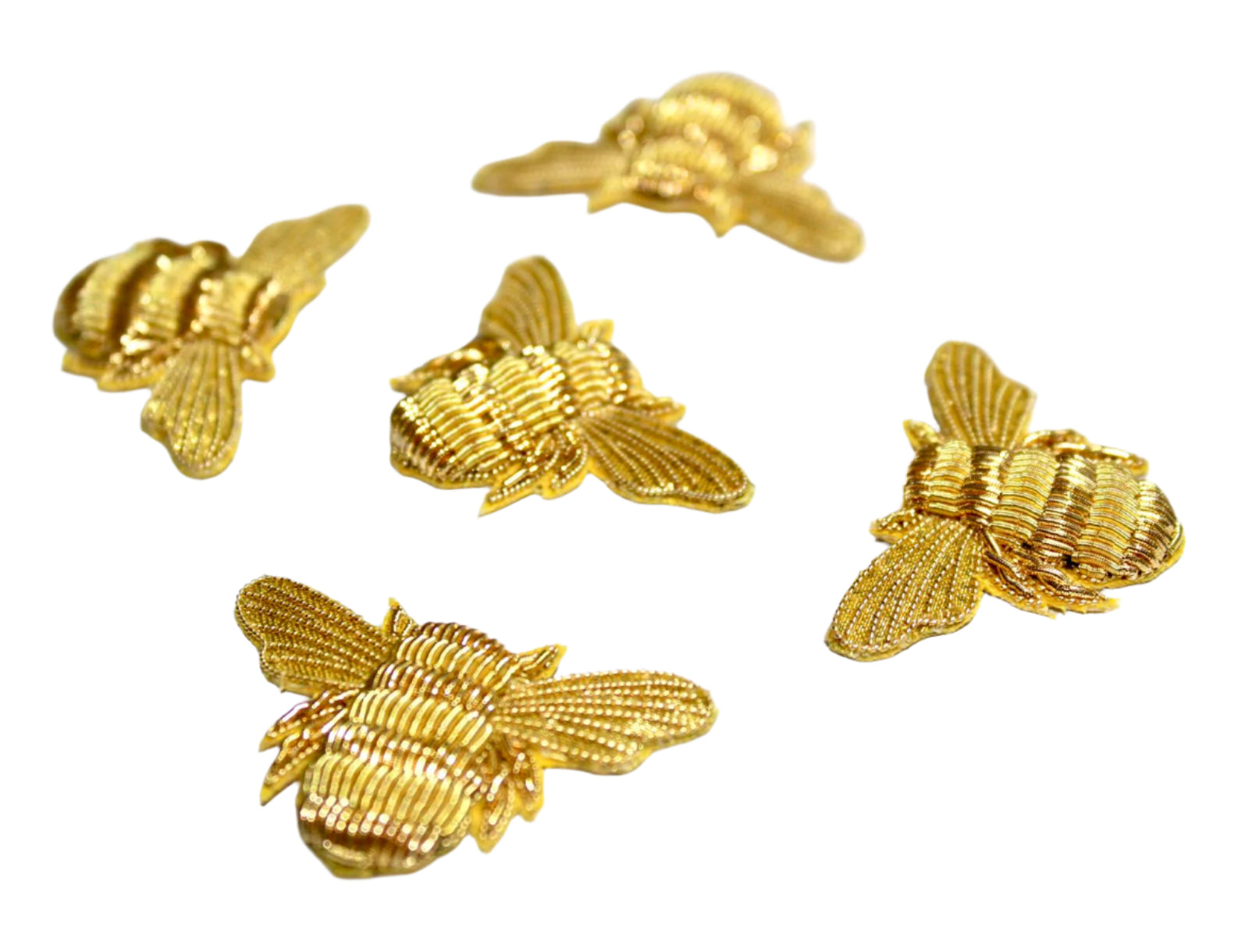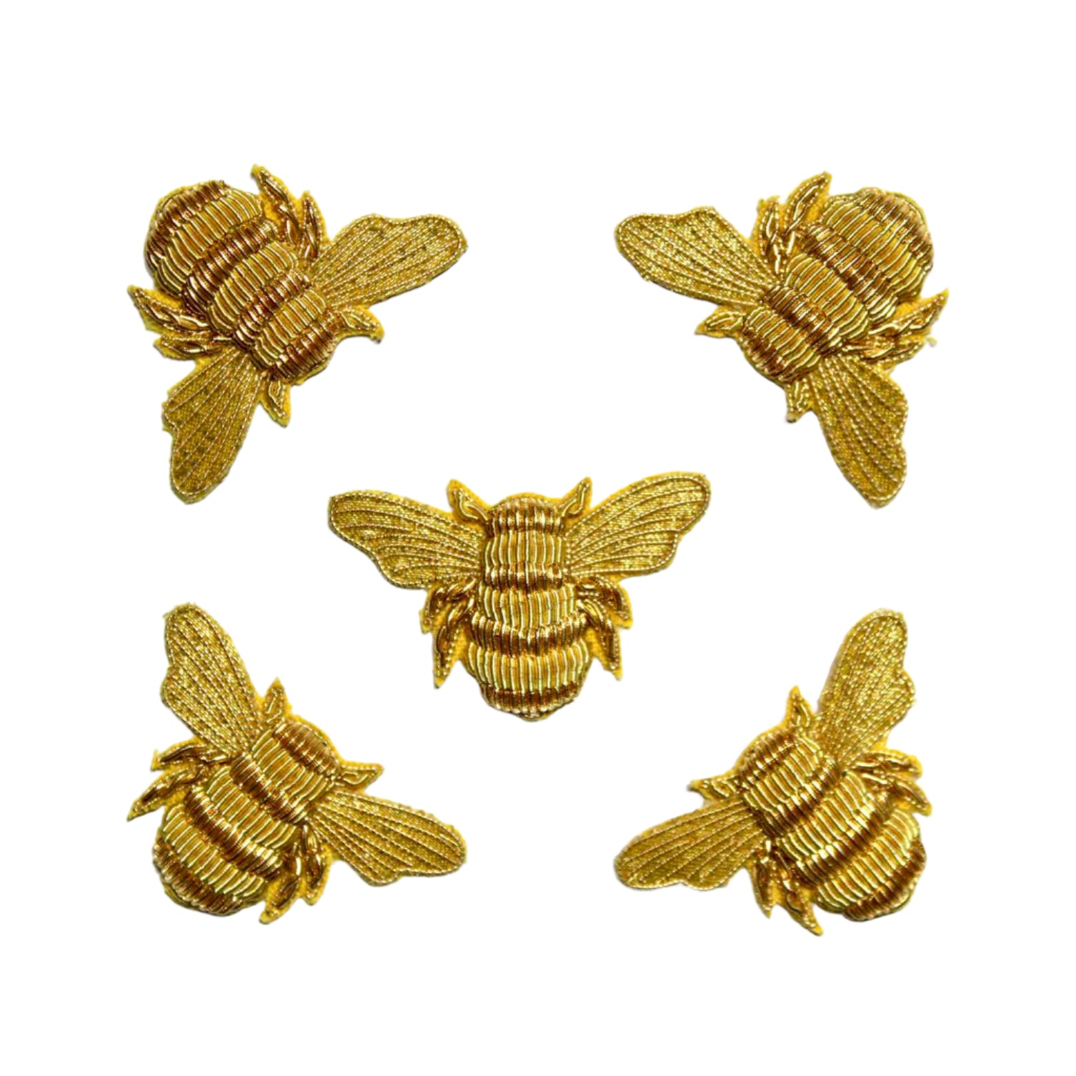 Hand-Embroidered Gold Bullion Bee Patch Set – 5 Pieces